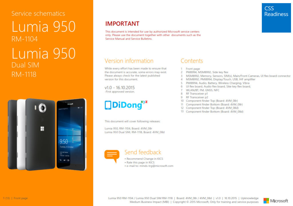 MicrosoftMicrosoft Lumia 950 Schematics Mời bạn tải về sơ đồ mạch Microsoft Lumia 950 RM-1104 RM-1118 Schematics v1.0 Microsoft Lumia 550 Schematics Nokia Lumia 530 Schematics
